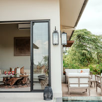 At 280 square meters, Casa Lunula comfortably accommodates groups of up to eight guests, offering a spacious yet intimate environment. Each of the four beautifully designed bedrooms comes with a king-sized bed and its own full bathroom, ensuring both comfort and privacy for all guests. The layout of the home encourages togetherness, with a seamless flow from the cozy living room to the expansive outdoor spaces.